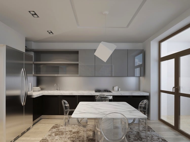 En choisissant un élément en pierre claire tel qu’une table ou un plan de travail en marbre gris clair ou blanc, vous donnerez à votre pièce un sentiment d’espace et de volume. Des meubles en pierre ne sont pas forcément lourds et imposants. Il suffit de trouver la bonne couleur.