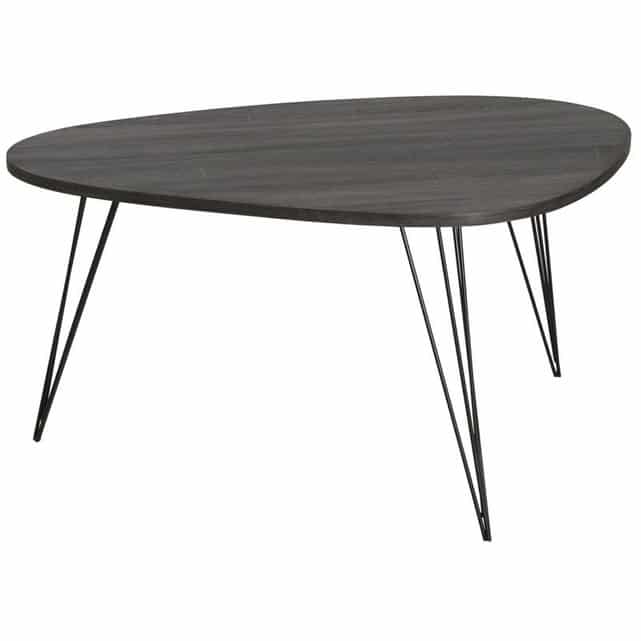 Ici un autre exemple de table basse d’inspiration scandinave avec un plateau gris galet monté sur des pied en bois. Ce meuble véhiculera une véritable atmosphère de bien-être et apportera beaucoup de modernité à votre pièce de vie.