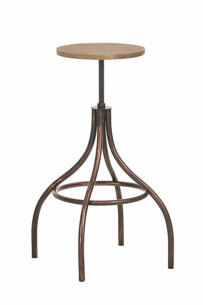 Tabouret ajustable avec assise en bois et pieds cuivrés