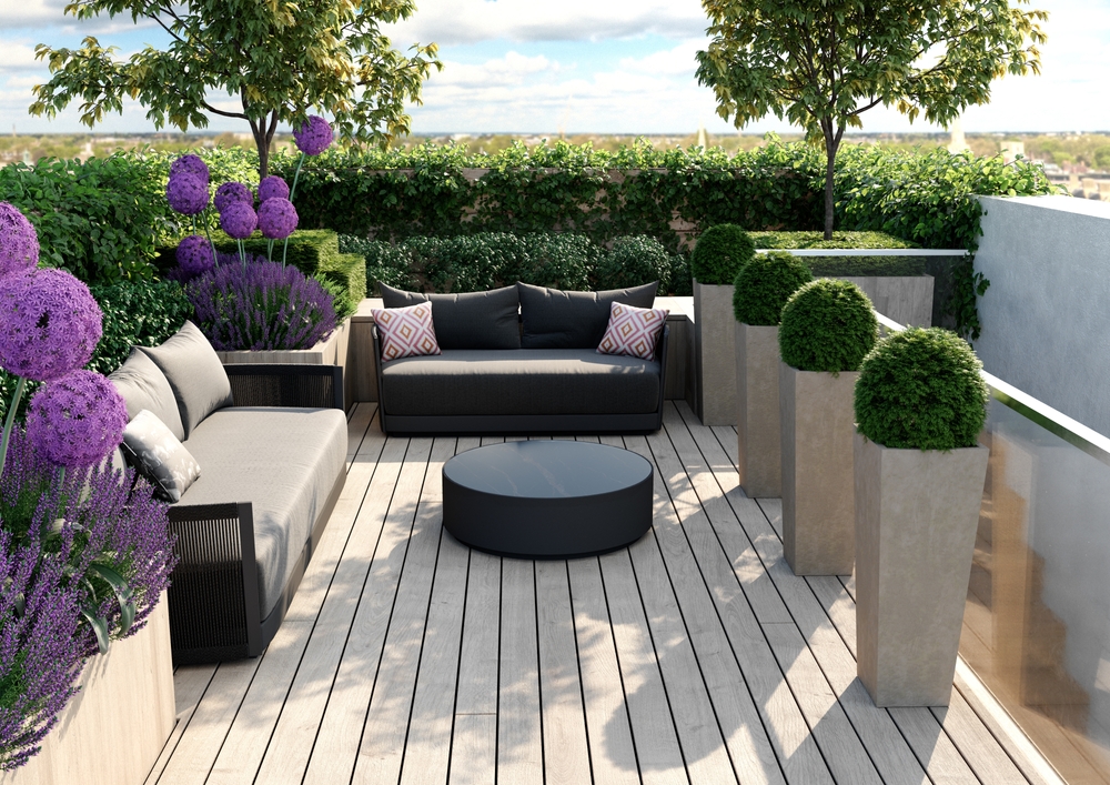 La décoration et les végétaux sont indispensables pour donner vie à une terrasse moderne.